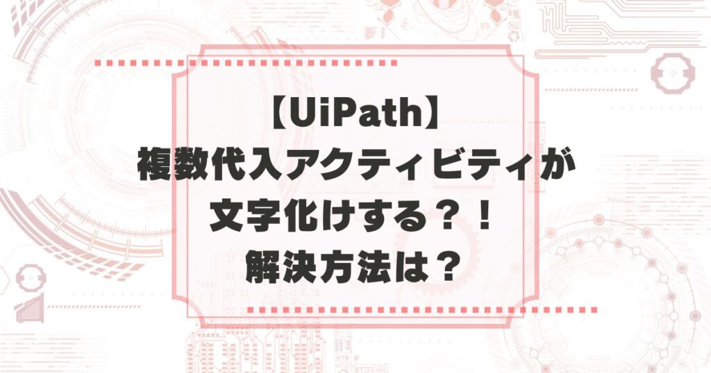 この記事がおすすめな人 UiPathの複数代入アクティビティで文字化けしてしまった 複数代入アクティビティで文字化けを直したい 複数代入アクティビティで文字化けしない為の対策を知りたい 結論から言うとバグで該当箇所の全修正! てなったので、私のよう... -