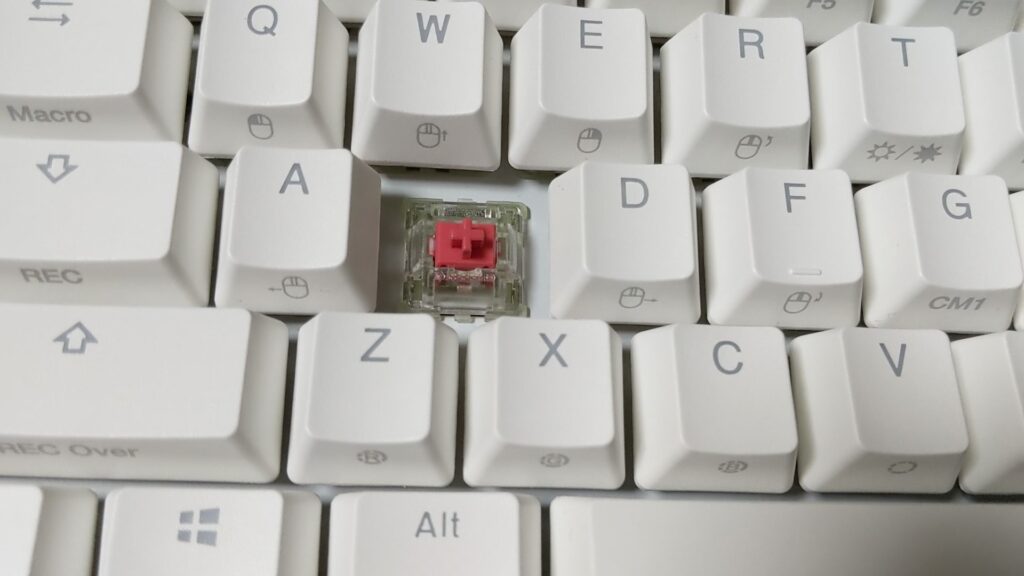 同じ静音赤軸(ピンク)という名前でも、スイッチの製造メーカーが違うと荷重やストロークに違いがあることもあります。