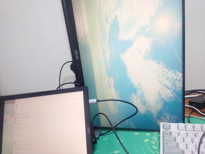 動画などを鑑賞する場合は手前において、入力作業などがメインのときは奥に戻す、なんて使い方もできそうです。